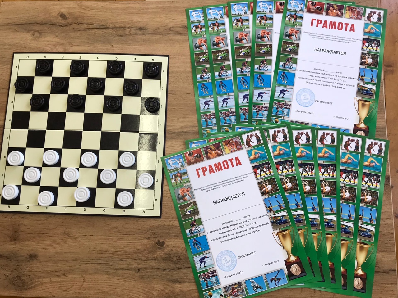 22 апреля 2022 года состоялось Первенство города Нефтекамск по русским шашкам 2009-2010 гг.р., посвящённое 77-годовщине Победы в Великой Отечественной войне 1941-1945 гг. В соревнованиях приняли участие воспитанники СШ спорткомитета отделения бокса и воспитанники МБУ ДО ДЮСШ отделения настольного тенниса 2009 г.р. и младше.