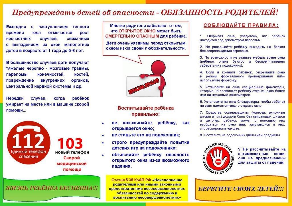 Рекомендации родителям: «Угроза выпадения ребенка из окна»