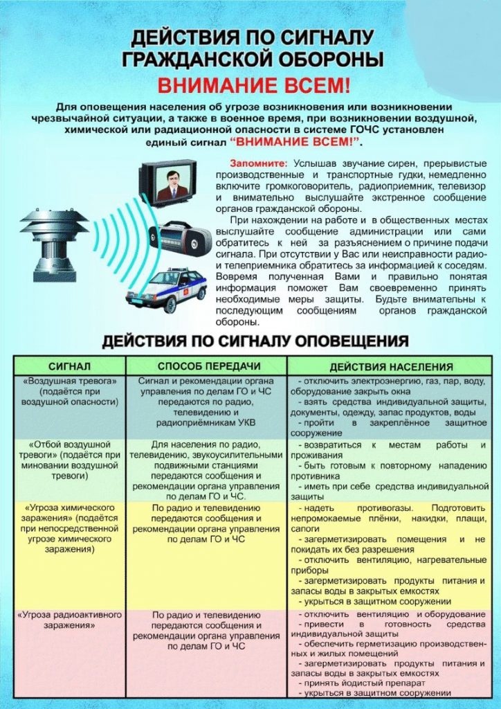Порядок действий при сигналах оповещения гражданской обороны