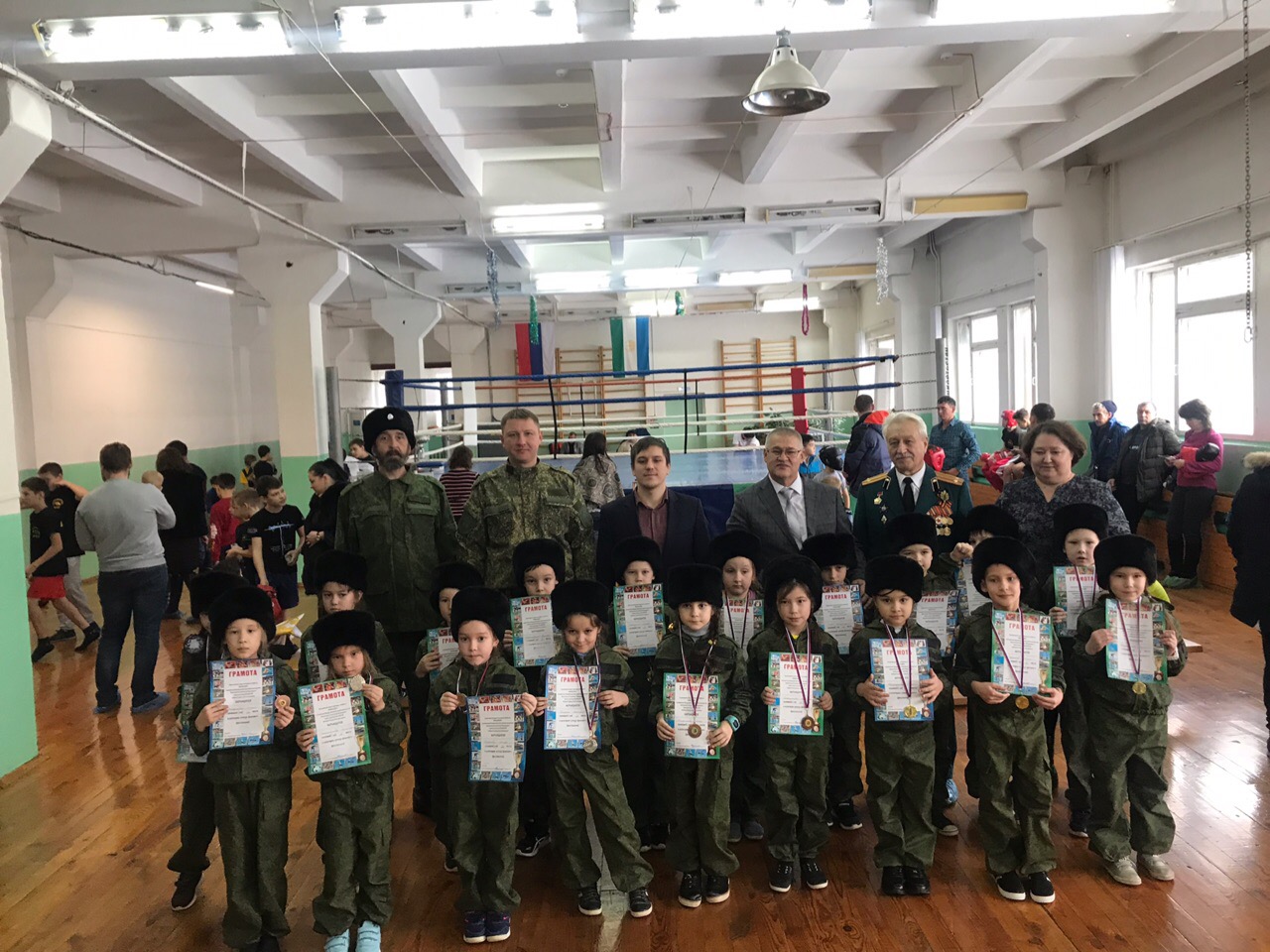 28 декабря 2019 года в МБУ ДО ДЮСШ Управления образования прошло открытое Первенство города по кикбоксингу «Новогодний турнир», в рамках Первенства города для начинающих спортсменов прошли внутриклубные соревнования по казачей национальной борьбе «Учкур», в которых приняли участие кадеты казачьего класса МОАУ с.Ташкиново. Всего в соревнованиях приняли участие более 50 спортсменов. Ребята были награждены грамотами, медалями и сладкими призами
